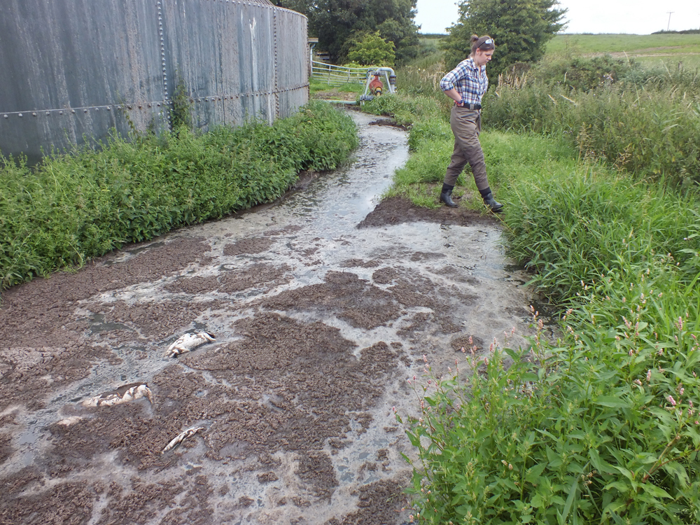 The sight that faced us on arrival at our site. Apart from a hose that is taped up, evidence of slurry spilling over the top of the tank and a shin deep pool of slurry with a steady flow of liquid entering the burn, there wan’t much wrong with the location.
