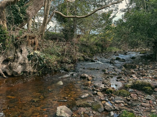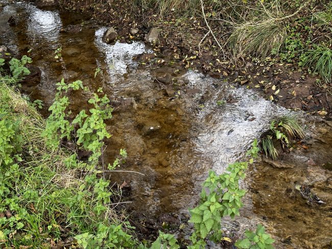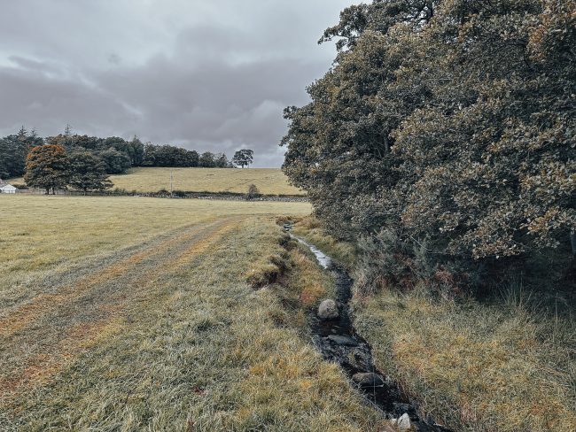 - The bed of the Claty Burn was coated in sewage fungus in October 2023 when we visited the burn hoping to complete a few electrofishing sites.
