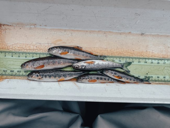- We recorded good numbers of salmon fry from our first site, there were a handful of trout too. This was a very encouraging way to start the days surveying off.